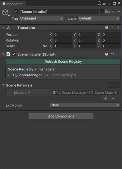 • 씬 한정 매니저([SceneReferral])를 쓸 계획이라면 SceneInstaller 가 해당 씬에 하나인가?
